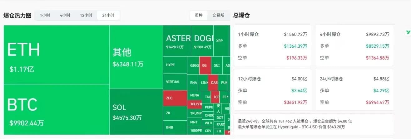 截至2025年11月3日,加密貨幣市場整體承壓。比特幣價格跌破110,000美元關鍵心理關口,目前交投於107,000美元附近,以太坊跟隨下跌至3,700美元附近。市場出現明顯去槓桿過程,過去24小時內全網爆倉金額高達4.89億美元,其中多頭爆倉佔比高達80%以上這一數據表明當前市場主要經歷的是多頭槓桿清理而非恐慌性拋售。