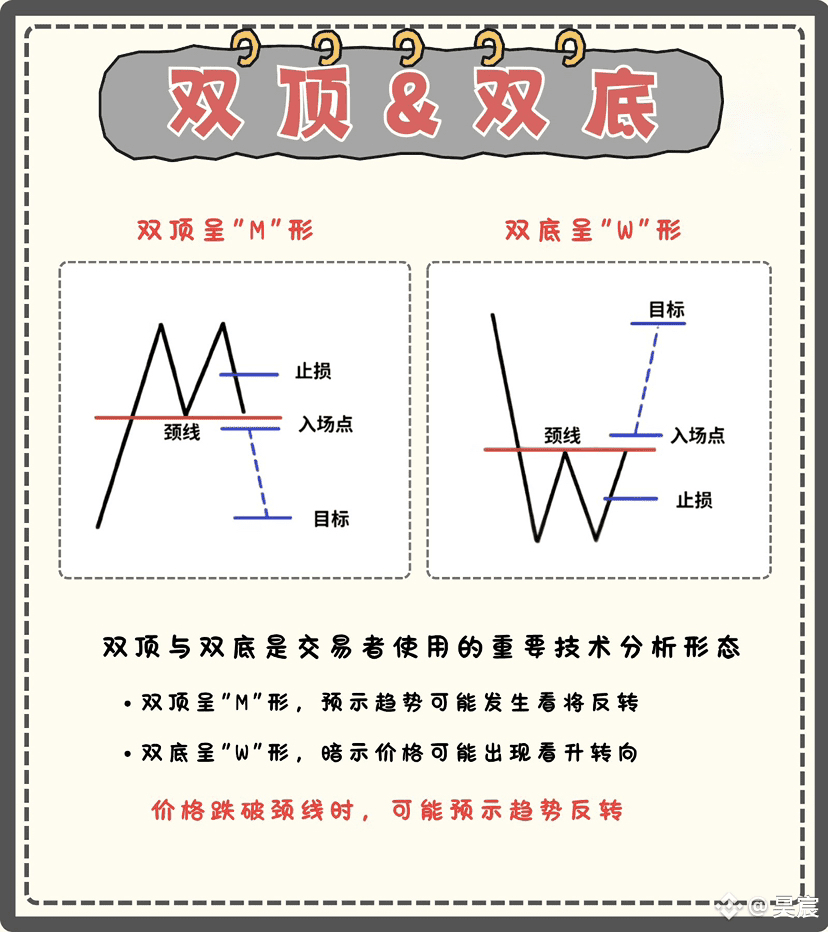 其实判断趋势反转,除了直观的“尖尖顶”“尖尖底”,“双顶”与“双底”是更靠谱的技术信号——一张图就能理清核心逻辑,帮你避开恐慌陷阱、抓准趋势拐点。