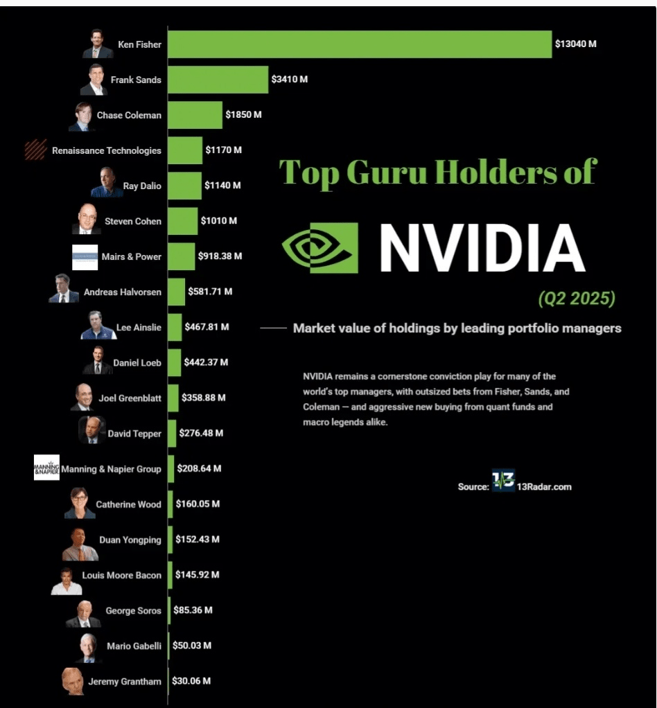 規模差距:費舍爾的$13B股份幾乎是下一個最大持有者的4倍。