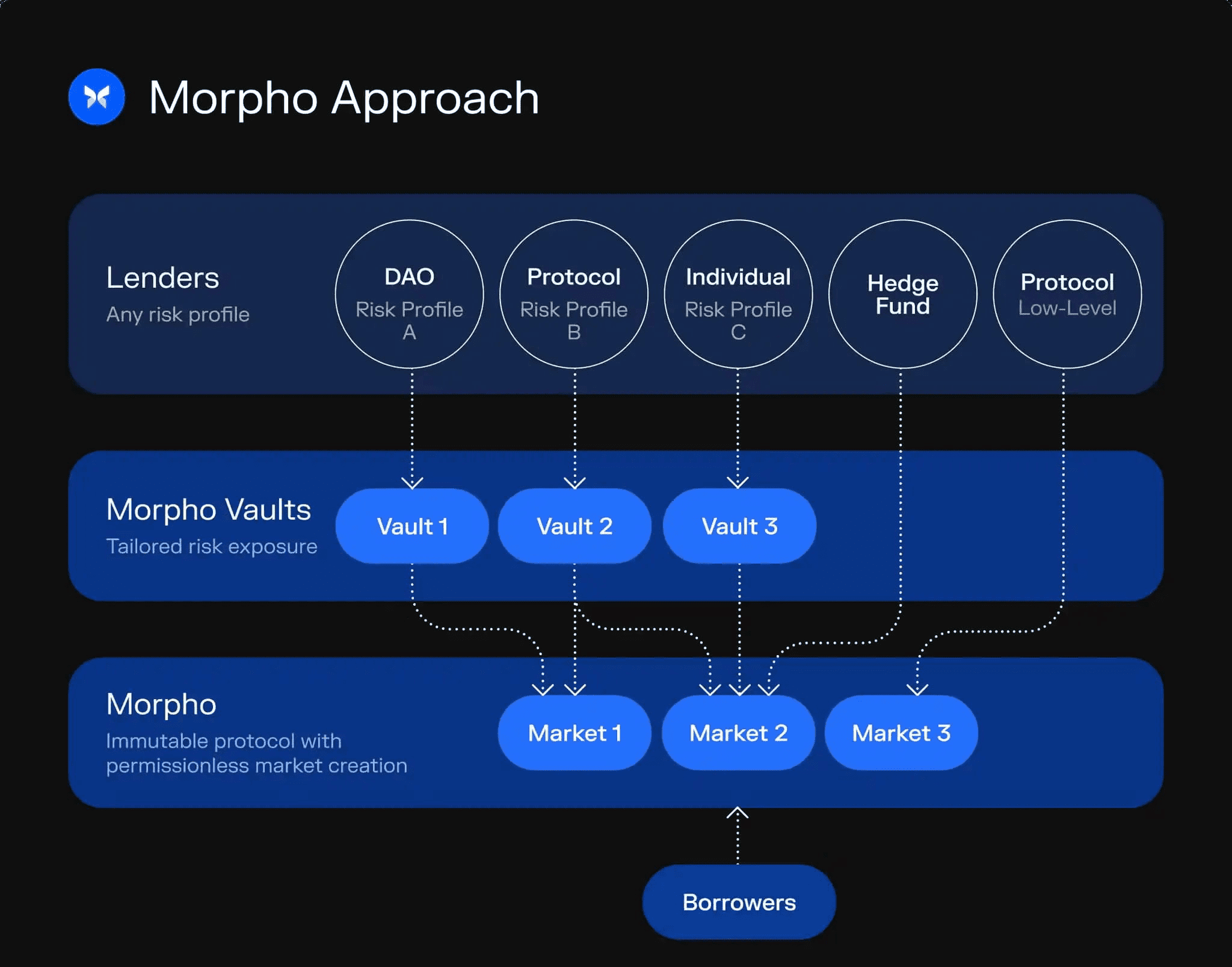 Morpho引入了一個在現有借貸協議之上無形存在的點對點匹配層。它並不取代Aave或Compound;它優化了它們。當借款者的利率與貸款者的期望匹配時,Morpho會直接將他們連接起來——消除了利差,提高了收益,並使整個系統更加精簡。當沒有匹配存在時,流動性會回流到基礎池。沒有任何東西會壞掉。沒有任何東西會碎片化。該協議簡單地變得……更好。