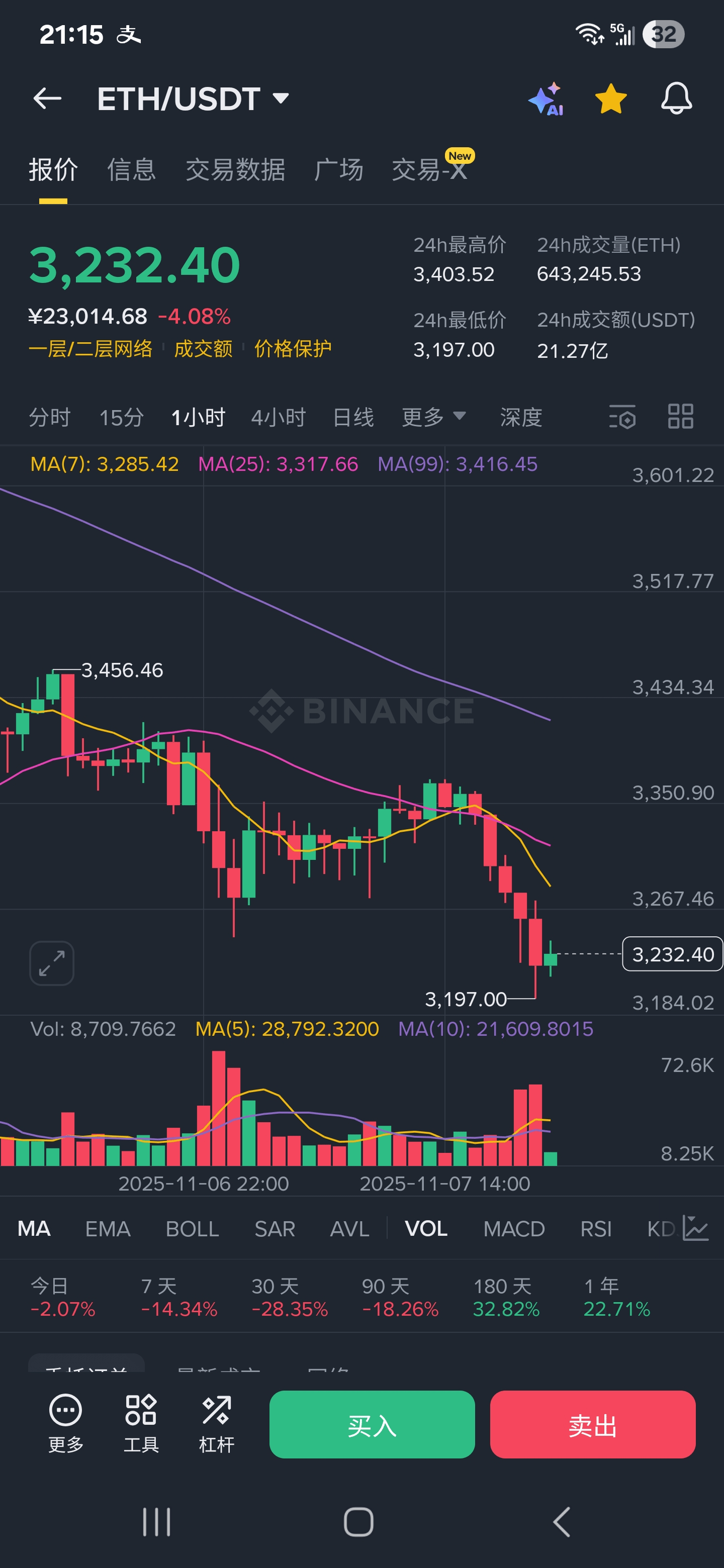 市場風雲變幻,11月7日以太坊(ETH)短期趨勢明確偏空,受宏觀風險與行業利空共振影響,價格持續承壓於關鍵均線下方。但關鍵支撐位附近的技術性反彈機會同樣值得關注,以下是今日精準交易策略,附核心操作要點與風險提示。