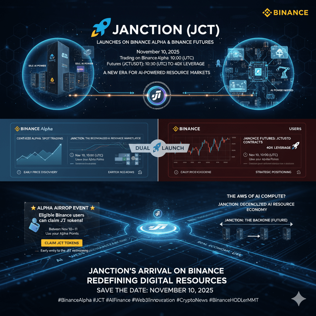 加密世界正在見證另一個突破時刻——Janction (JCT) 將於2025年11月10日正式加入Binance Alpha和Binance Futures。這一雙重推出不僅引入了一種新代幣;它開創了一種在區塊鏈上租賃和共享AI資源的革命性模型。