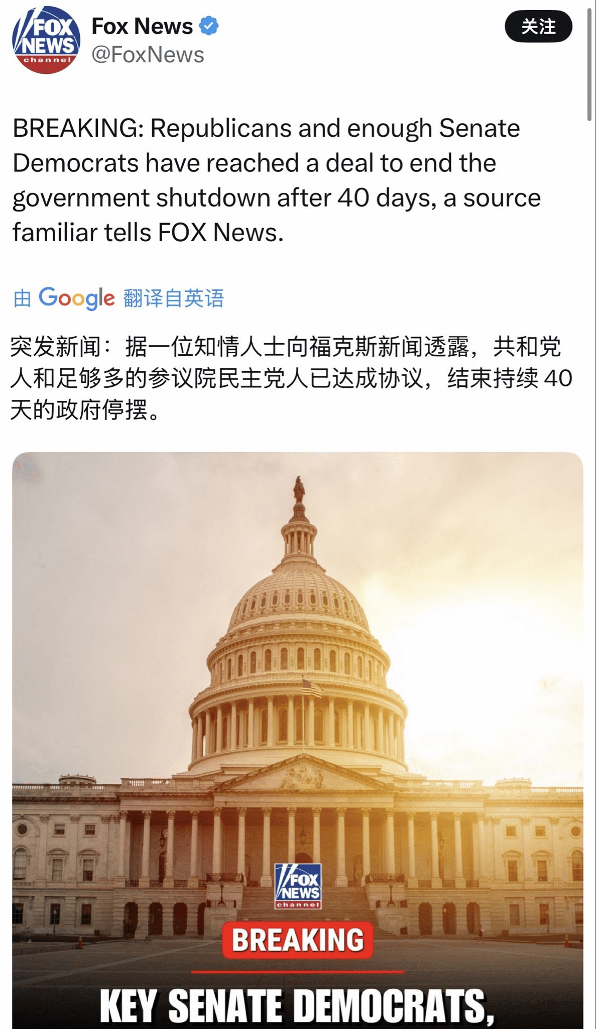 影響:聯邦僱員(包括軍人)恢復正常支付,機場恢復運營,市場不確定性消除。特朗普政府強調這不會影響醫保/醫療補助,但短期內食品援助(如WIC/SNAP)仍有小幅延遲。