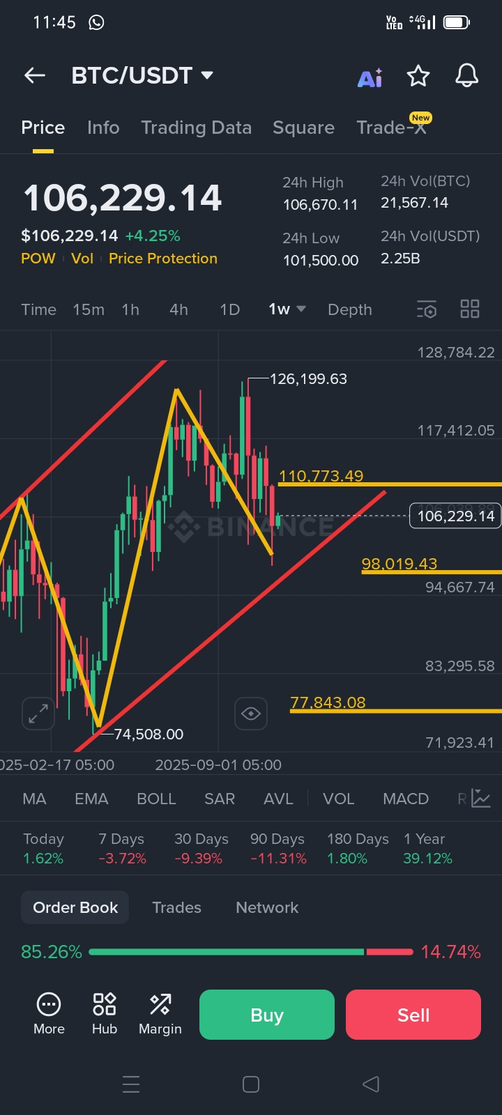 我已經見過多個夥伴,其中一位告訴我們,btc在觸及110K後可能會下跌🙂。