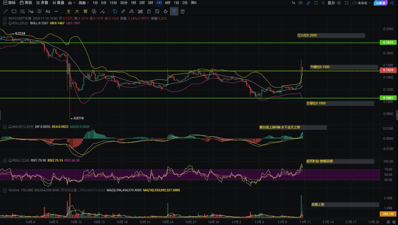 剛纔刷到Jump Crypto往幣安砸了1842萬枚WLFI,我手心瞬間冒汗——再定睛一看1小時K線,RSI三個數值全部爆表,MACD金叉卻像極了死刑犯的最後一餐…今晚要麼暴漲突破0.1975,要麼屍橫遍野砸向0.1! 你口袋還扛得住嗎?