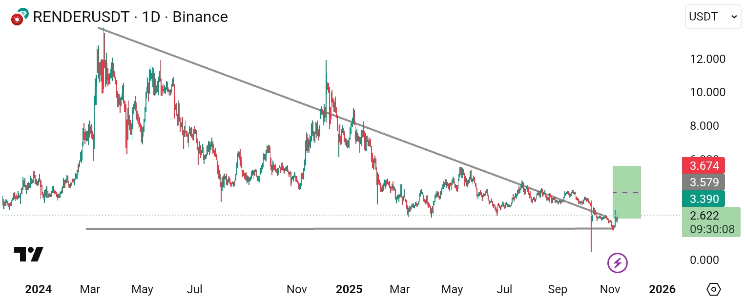 反轉確認 ⚡ — 斯巴達人 ⚔️,RENDER在經過數月的壓縮後剛剛甦醒…不要錯過這波浪潮 🚀。