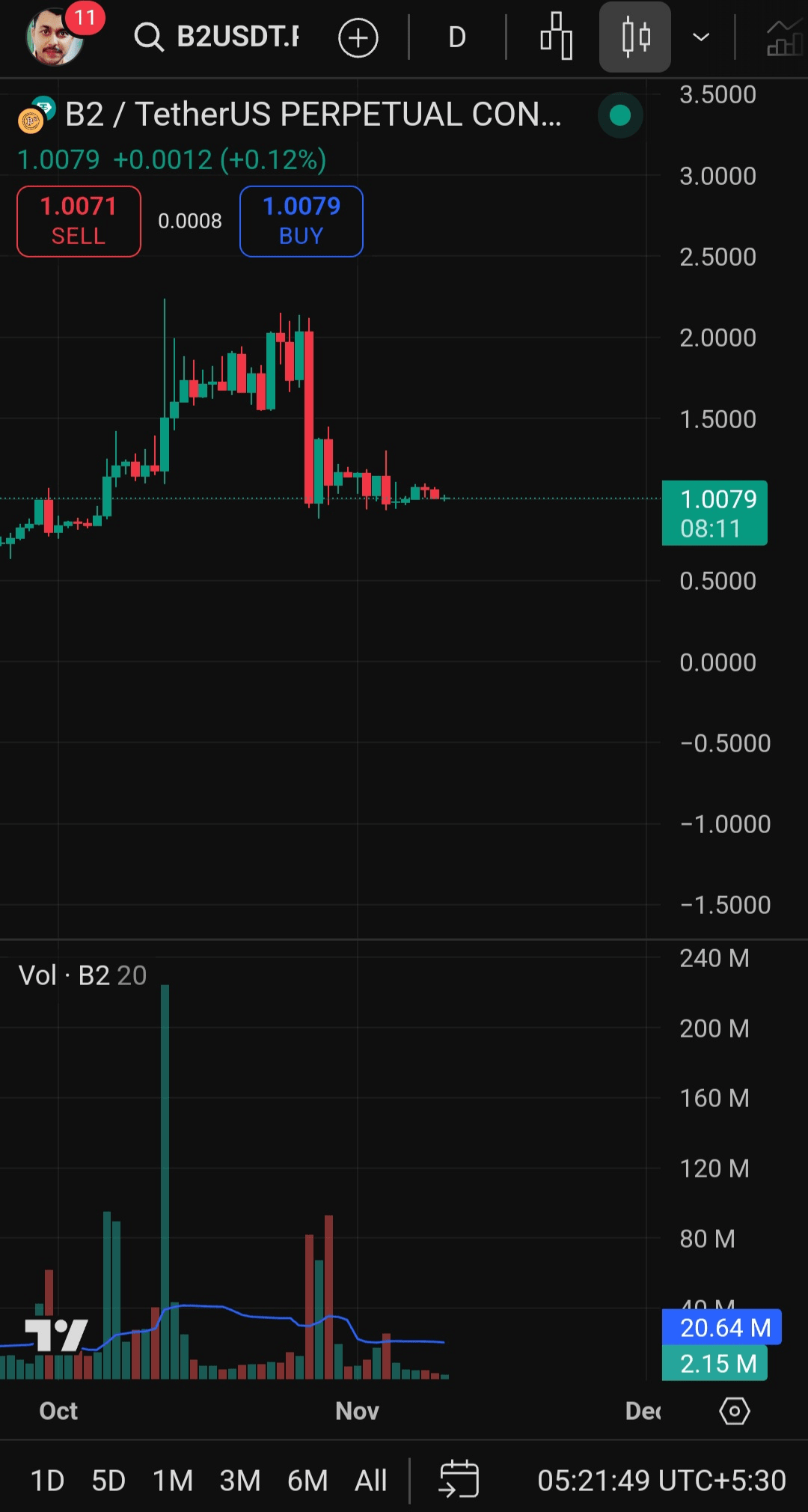 B2USDT 交易對在過去幾周經歷了長期的下行趨勢,1天的蠟燭圖表明瞭這一點。然而,最近的價格走勢暗示可能的趨勢反轉,值得進一步關注。