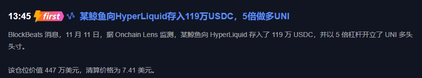 幣圈的朋友們!某鯨魚狂砸119 萬 USDC、5 倍槓桿梭哈做多 UNI,這波操作炸出來,你是心跳加速想跟車,還是後背一涼覺得不對勁?作爲你們的頂級幣圈分析師,今天就把這消息面掰碎了,教你避開坑、看透未來走勢,讓你明明白白在幣圈賺錢!