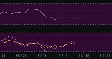 Mfi和rsi上看,mfi在中性偏下的位置,rsi在中性區間,這裏只需要繼續下跌一兩天,mfi和rsi的方向就能一致向下了。
