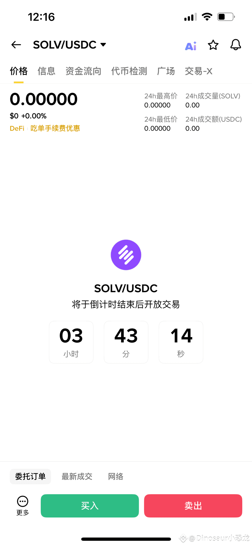 “DeFi | 吃单手续费优惠”的标识,暗示了SOLV/USDC交易对在去中心化金融领域的定位。手续费优惠的策略,无疑是为了吸引早期用户,提升交易流动性。而在交易正式开放前,这样的信息已经为市场参与者提供了初步的行动线索。