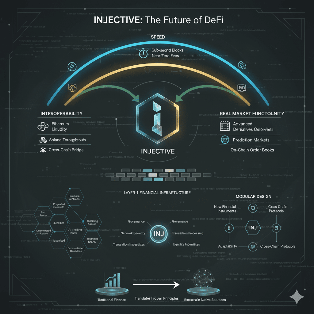 Injective 並不是試圖以去中心化的形式重新發明傳統金融,而是將經過驗證的市場原則轉化為區塊鏈原生解決方案。它在完全透明和可組合的環境中複製了熟悉的市場機制,如訂單簿、市場做市和衍生品交易。
