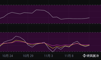 Obv上看,今天行情上涨obv有了一定的上涨,不过量能还是不大,如果行情要真的上涨,需要连续的量能或大量来支撑,所以这里的量能还没有到多军反攻的地步。