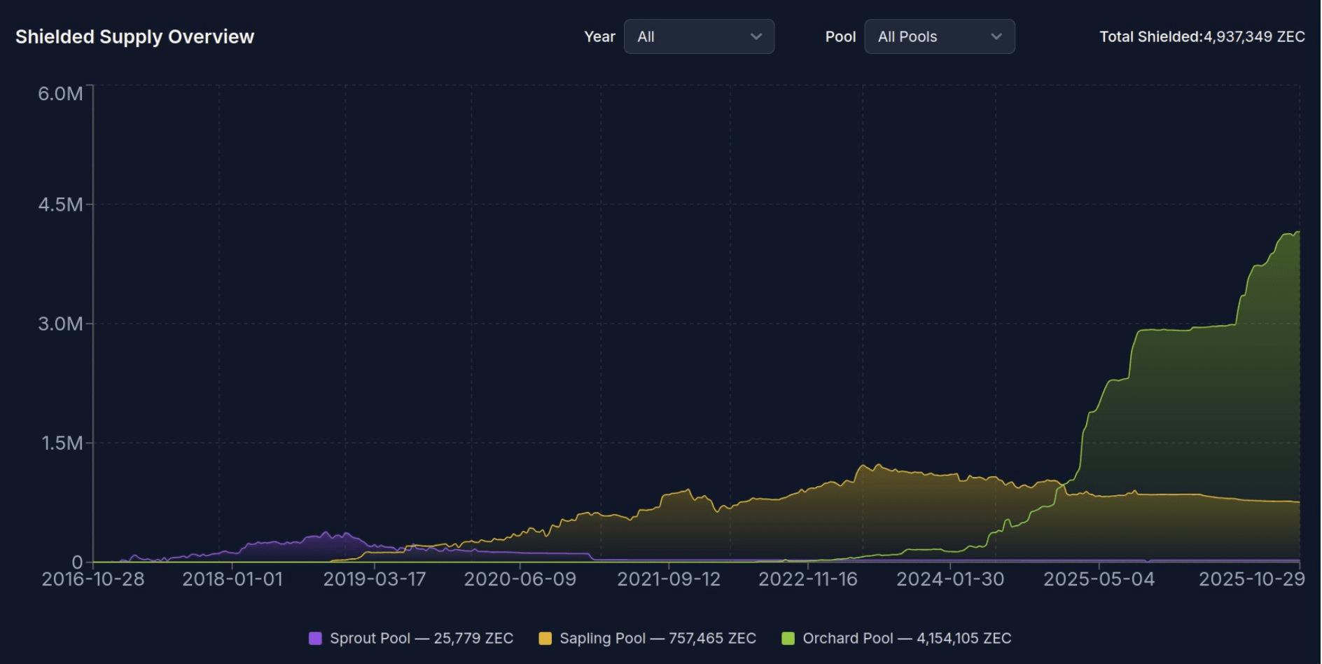 自10月1日起,近100萬個ZEC(+25%)已轉入受保護的池幾乎全部是由於一旦意圖和移動用戶體驗上線,果園池的垂直爆炸。