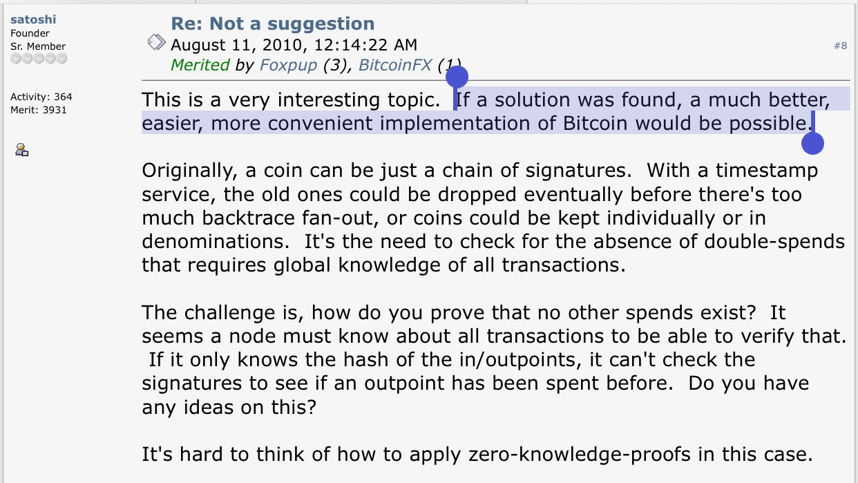 甚至中本聰在2010年公開承認了這個限制:“如果找到解決方案,比特幣將可能有一個更好、更簡單、更方便的實現。”