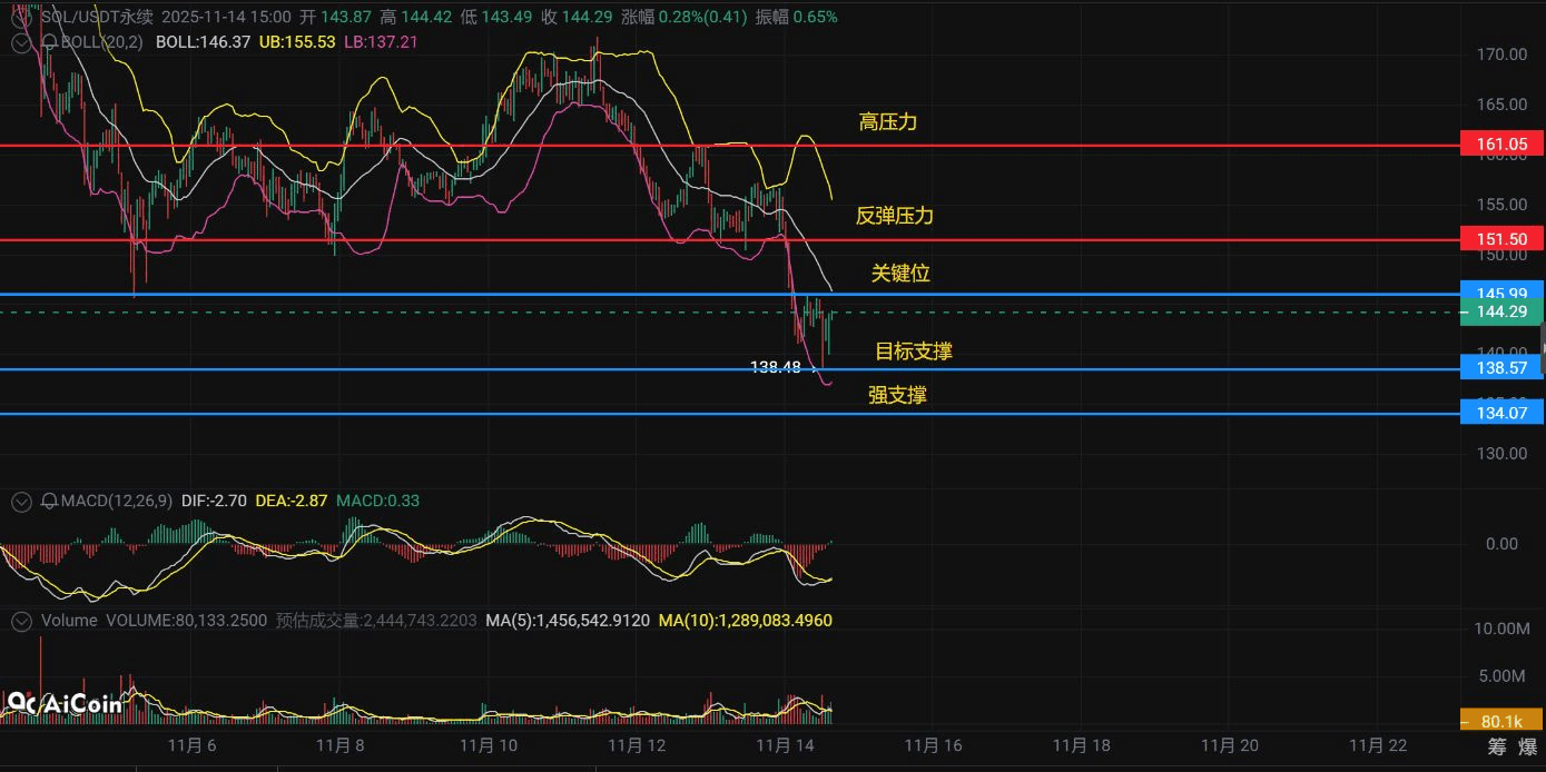 下方支撐:138美金是“保命線”,一旦砸穿直接奔着134美金強支撐去——這裏要是再崩,SOL怕是要重回“三位數時代”!