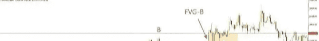 上圖裏,價格跌破擺動低點A和B時都形成了一個有效的FVG區域,且A點和B點都包含在FVG區