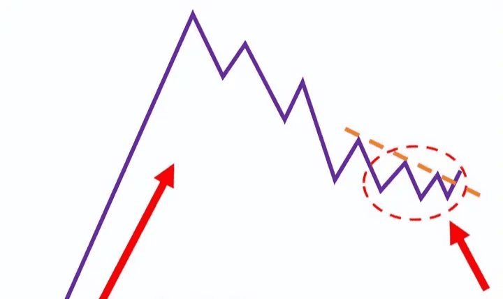 雖然這個形態也不斷的創出更低的低點,這一系列更低的低點和更低的高點讓散戶買家覺得趨勢仍然看跌。