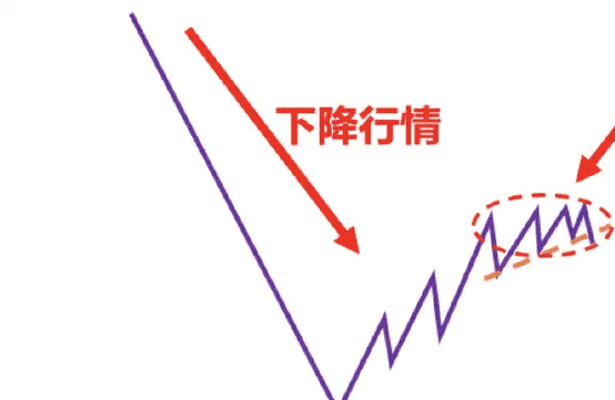下降模形是一個看漲反轉信號,也就是說,這個行情原先是一個健親的下降行情,只是由於實方動能不足,或者其他原因,導致價格無法繼續向下推動,這時候賣方是直接放棄,還是願意在更離價格重新做空,這個我們不得而知。