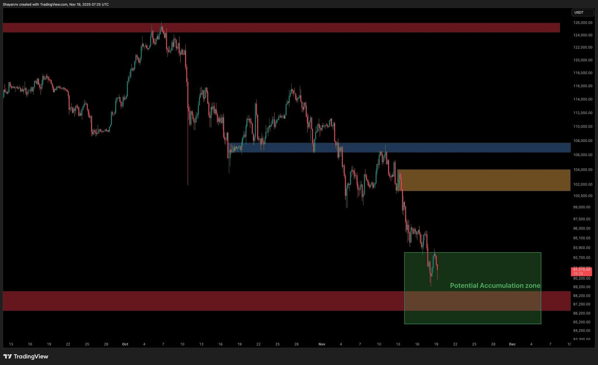 如果賣方佔主導,則可能會掃過$88K,儘管聚集的低點暗示著早期的累積。