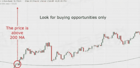 當價格高於200日均線時,在支撐位尋找買入機會;