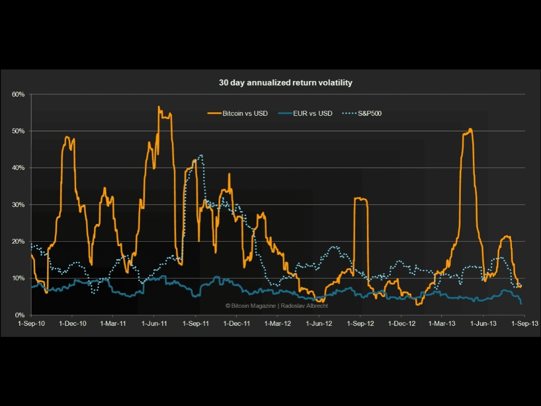 比特幣在歷史上波動性非常高,尤其是在其早期階段。例如,一些研究表明,在過去的加密貨幣繁榮/崩潰週期中,年化波動率超過 80-90%。