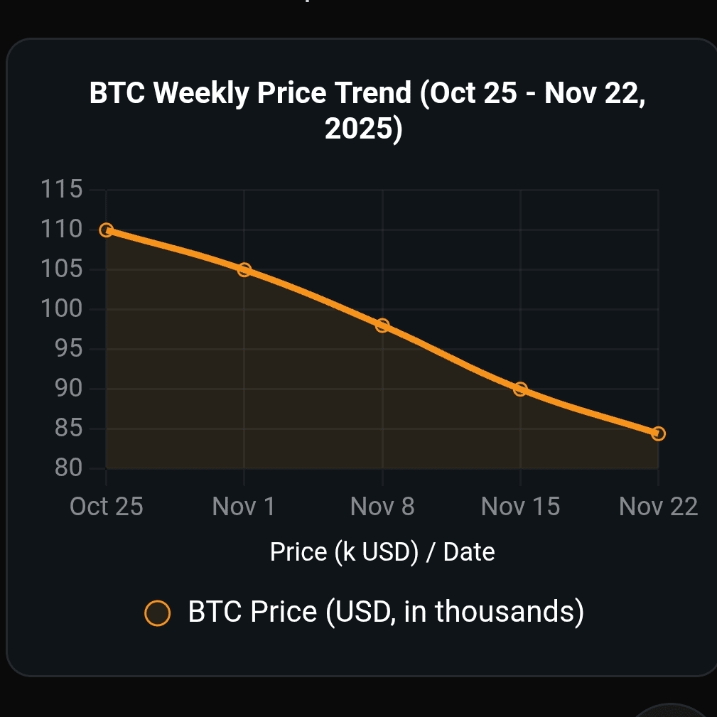 截至2025年11月22日世界協調時間19:00,比特幣的交易價格約爲$84,431美元,反映出過去24小時內 modest +0.71%的漲幅。這是在一個波動的交易時段之後,BTC一度跌至接近$82,000的日內低點,然後在$83,000–$85,000區間內穩定下來。市場資本化爲$1.68萬億,24小時交易量爲$68.12億——表明儘管近期流出,但流動性仍然持續。