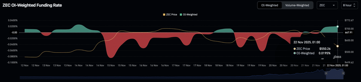 與合約市場相關的融資利率首次變爲正值。