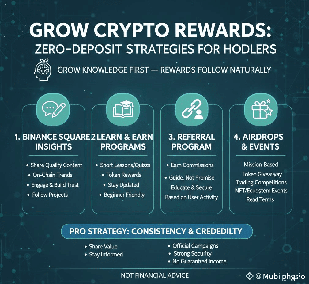 Earning through Binance without upfront investment is possible through legitimate platform features, but results vary and require effort, participation, and patience. As always, crypto markets carry risk, and nothing here should be taken as financial advice.