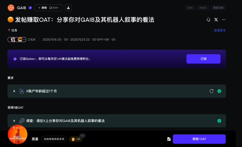 兩分鐘讓你零擼GAIB究極大毛!平頭哥領了980枚GAIB代幣,價值一百多u,可比刷Alpha性價比高多了!全程0成本,簡單兩步兩分鐘搞定,保姆級教程來了!