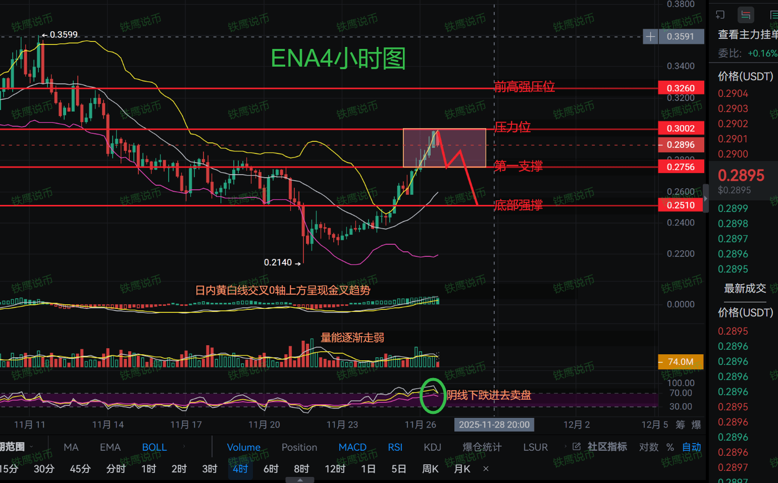 從4小時K線圖來看,ENA正處在關鍵轉折點: