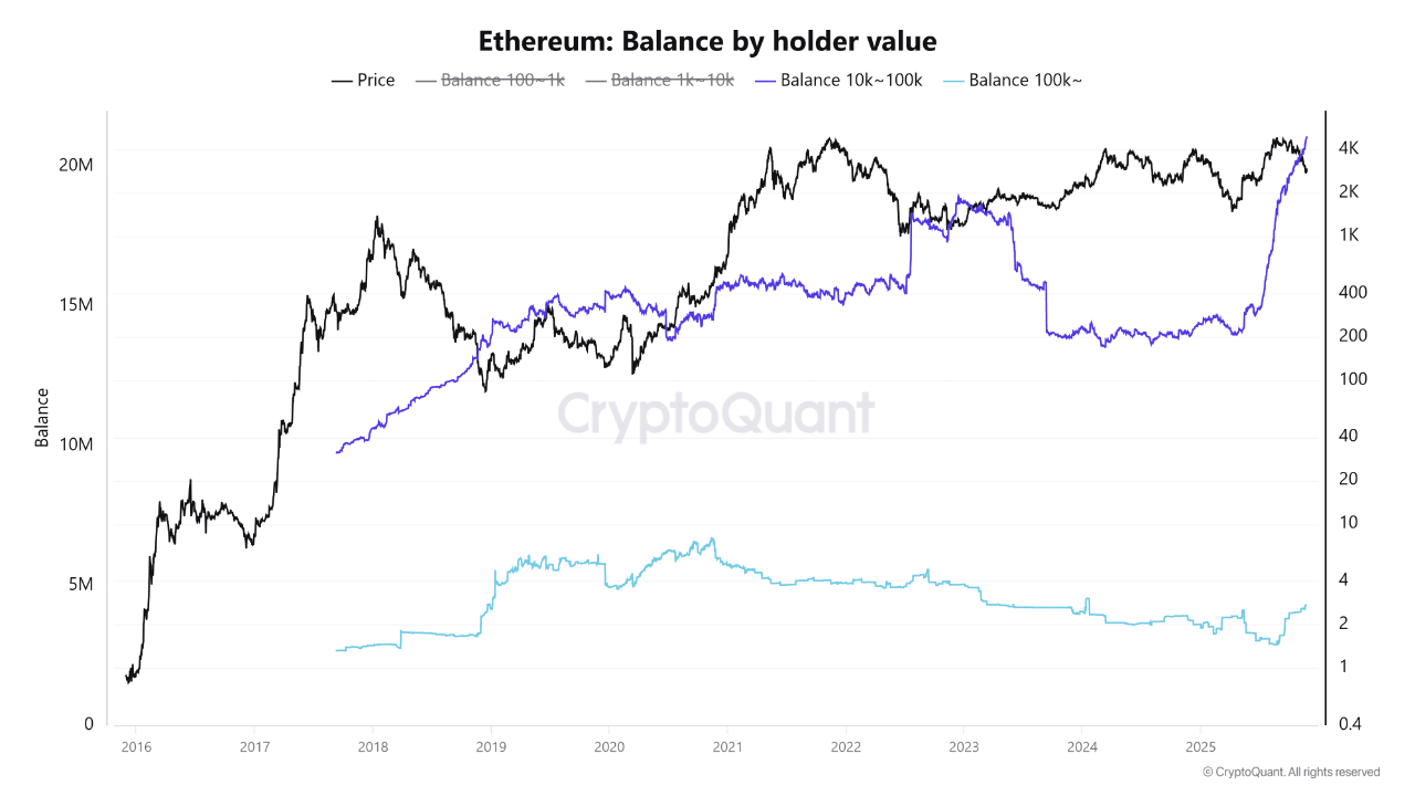 鏈上這波數據把以太坊的底牌都攤開了:原來真正悄悄加倉的不是散戶,而是能一出手就幾萬枚起跳的巨鯨大戶。1萬到10萬枚的ETH巨鯨持倉第一次衝破2100萬枚,直接創下歷史新高;10萬枚以上的大機構也囤到430萬枚,典型的大錢在用震盪當打折季狂掃籌碼。與此同時,幣安的ETH庫存一路掉,從9月開始減到11月只剩376.4萬枚,說明籌碼正在往冷錢包和質押區深度遷移,市場能買的現貨越來越少。再加上ETH最近死死穩在2950美元這條線,巨鯨暴力吸籌+交易所庫存猛掉+長期資金正式上線,這三件事像拼圖一樣組合出了同一個意思:以太坊正在被大資金默默“加碉堡”。歷史上每次出現這種配置,以太坊後面基本都要起飛幾個月,這次規模更大、節奏更猛,看起來下一段劇情已經在寫了。