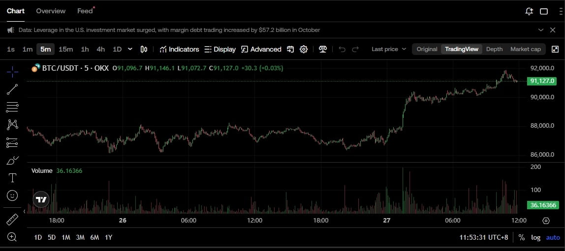 在這一政策背景下,比特幣再次成爲實時情緒的衡量標準。在過去幾天中,比特幣經歷了新的波動,最初與更廣泛的風險資產一起回落,隨後隨着12月降息預期的升溫而逐漸回升。