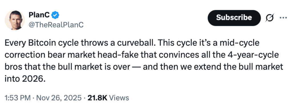 有趣的是,儘管Lee下調了年底預測,但有報道稱他仍維持看漲觀點,預計比特幣將在明年1月底前反彈至15萬至20萬美元之間。