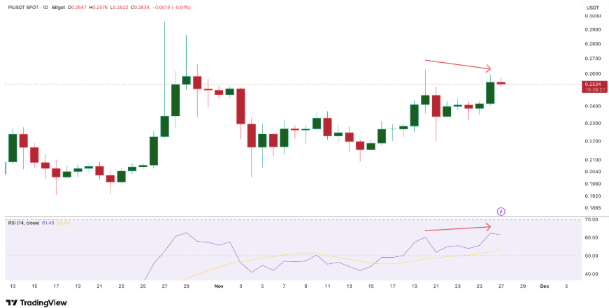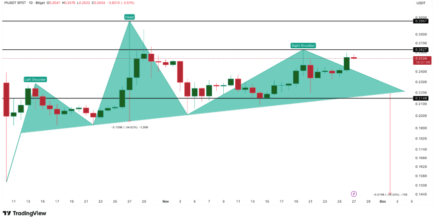 抵消威脅:爲了完全拯救自己並取消頭肩形態,Pi Coin不僅必須保持上升,還必須在 $0.29 以上實現決定性的每日收盤。這一陡峭的移動是確認反彈仍在控制之下的唯一方式。