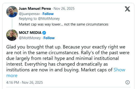 然而,作為回應,另一位參與者建議,早期的漲勢是在非常不同的條件下發生的,因為當時的市場市值要小得多。Molter對這一點表示同意,但表示市場在重要方面發生了變化。