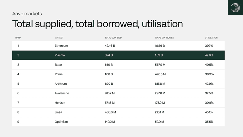 排名表講述了其餘的故事。Plasma 上升到全球第 2 的 Aave 市場並不是分配排名的真正信號。一個新鏈不應該在幾個月內超過 Base、Arbitrum、Optimism、Avalanche 和其他所有“成熟” L2。但 Plasma 做到了。不是因爲它有最多的激勵。也不是因爲它有最多的資產。而是因爲它表現得像一個有貨幣意圖的系統。