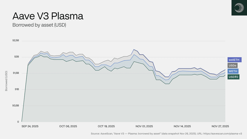 借貸數據強化了這種解釋。USDT0、USDe 和 WETH 曲線的平行形狀暗示了同步的信用需求。這不是零售在孤立資產上追逐槓桿。這是將鏈視爲統一資金生態系統的用戶的行爲。當所有主要可藉資產一起移動時,市場正在揭示對資金成本、流動性深度和信用環境穩定性的共同預期。