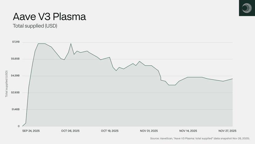 有一個時刻,生態系統不再看起來像區塊鏈,而開始表現得像資產負債表。當Aave的數字開始表達宏觀層面的規律而不是L2波動時,Plasma跨越了那個點。鏈通常會隨着激勵、市場週期和代幣輪換而波動。@Plasma 是不同的。它的信用曲線看起來不像DeFi,更像是一個嚴格管理的資金系統,在這個系統中,流動性、借貸和抵押品形成以協調的模式移動。