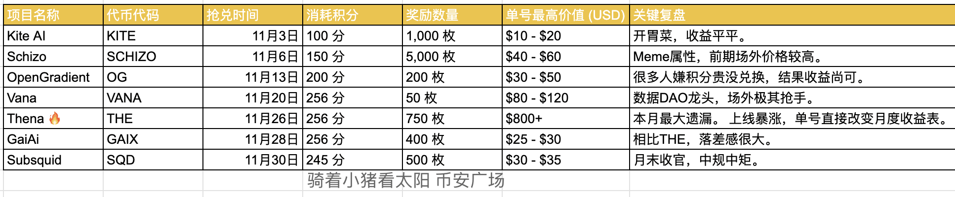 簡單總結一下11月 Binance Alpha 幾個亮眼的項目: