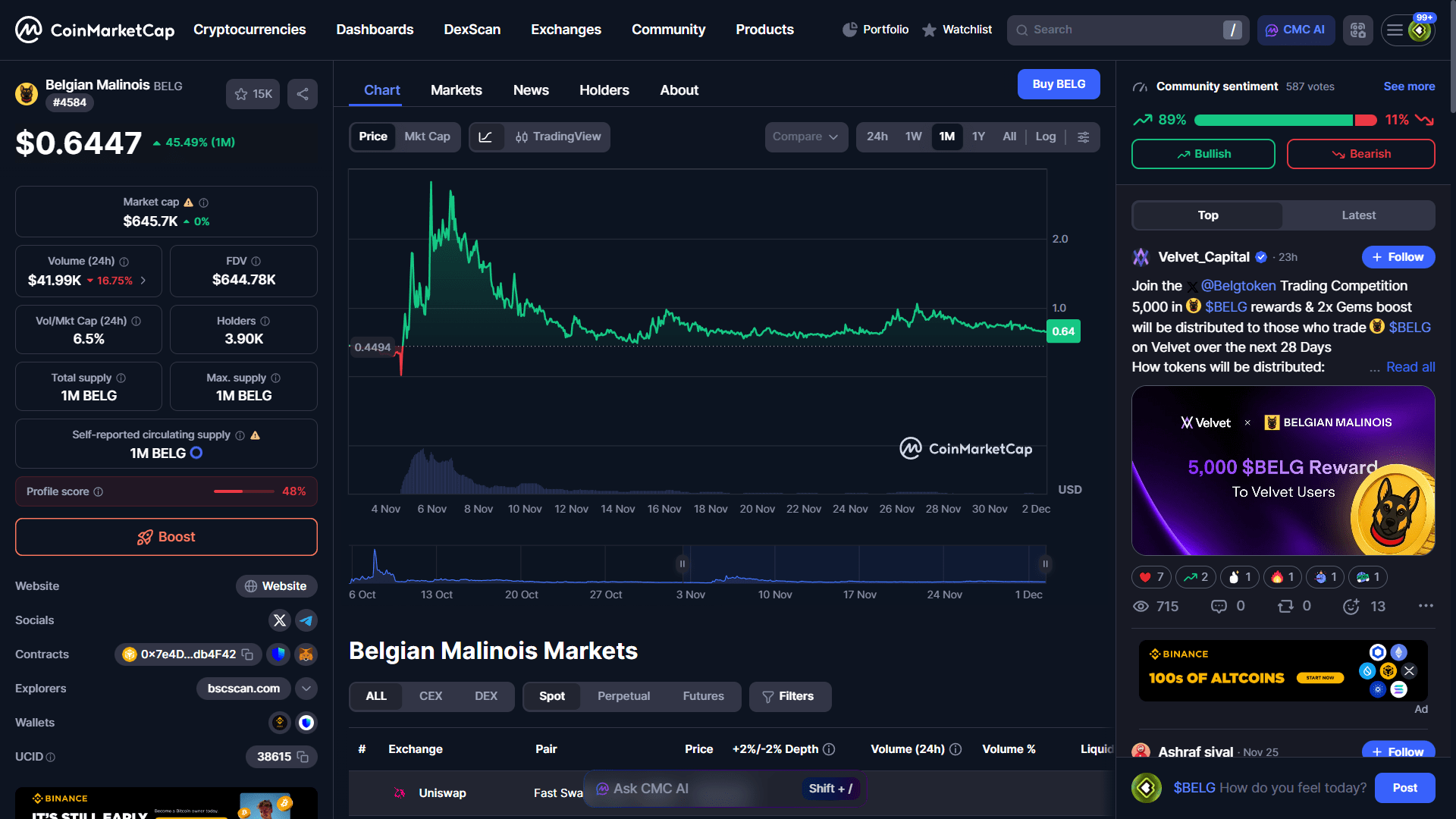 收益特徵:由於其最低市值,BELG僅需最小資本即可啓動拋物線移動。投機性賭注是突然的迷因幣熱潮可能推動價格突破1.00美元的心理障礙,獎勵積極的早期交易者。