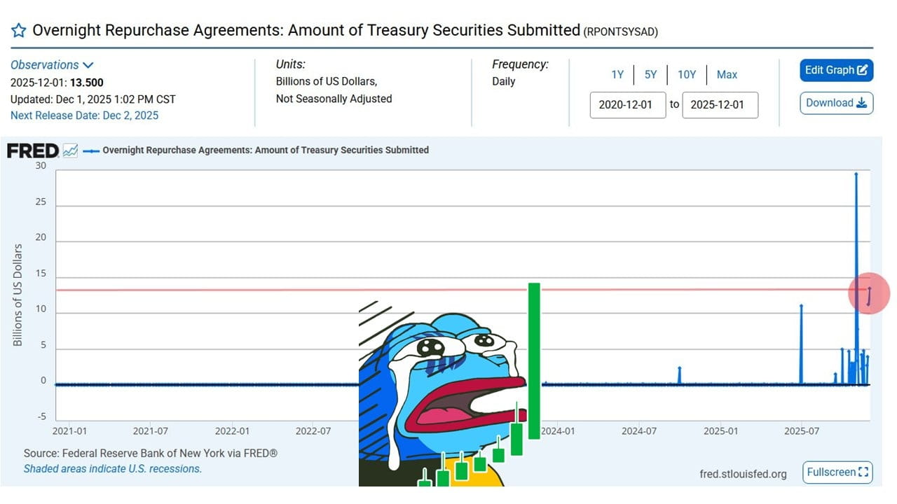 最大的消息是什麼?聯邦儲備銀行剛剛通過隔夜回購協議向美國銀行基礎設施注入了驚人的 $13.5 十億。這讓我爲你提供一個視角——這代表了自 COVID-19 大流行影響我們經濟以來,我們所見的第二大流動性提升。