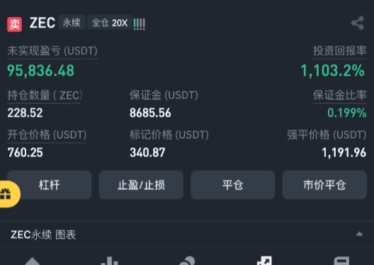 浮盈從9.5萬掉到6.6萬,ZEC從340反彈到361,這單空頭我繼續拿。具體邏輯如下: