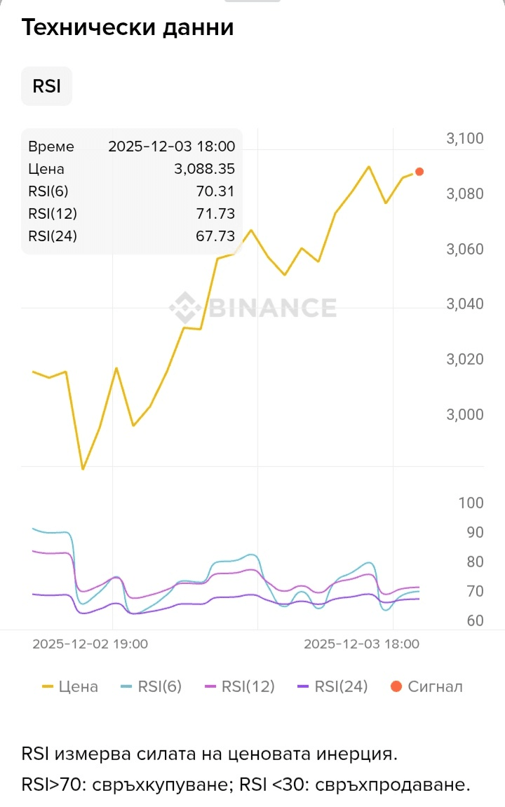 2. RSI 超買:技術指標顯示以太坊的 RSI 目前在超買區域,這暗示著在最近的獲利後可能會有價格修正。