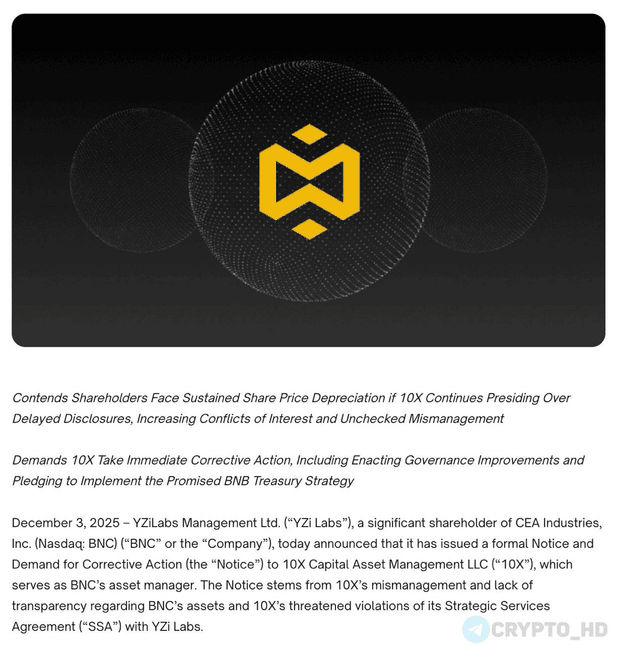 🔻 現在YZi Labs要求立即將一切恢復到聲明的戰略框架內,披露數據並建立公司治理。