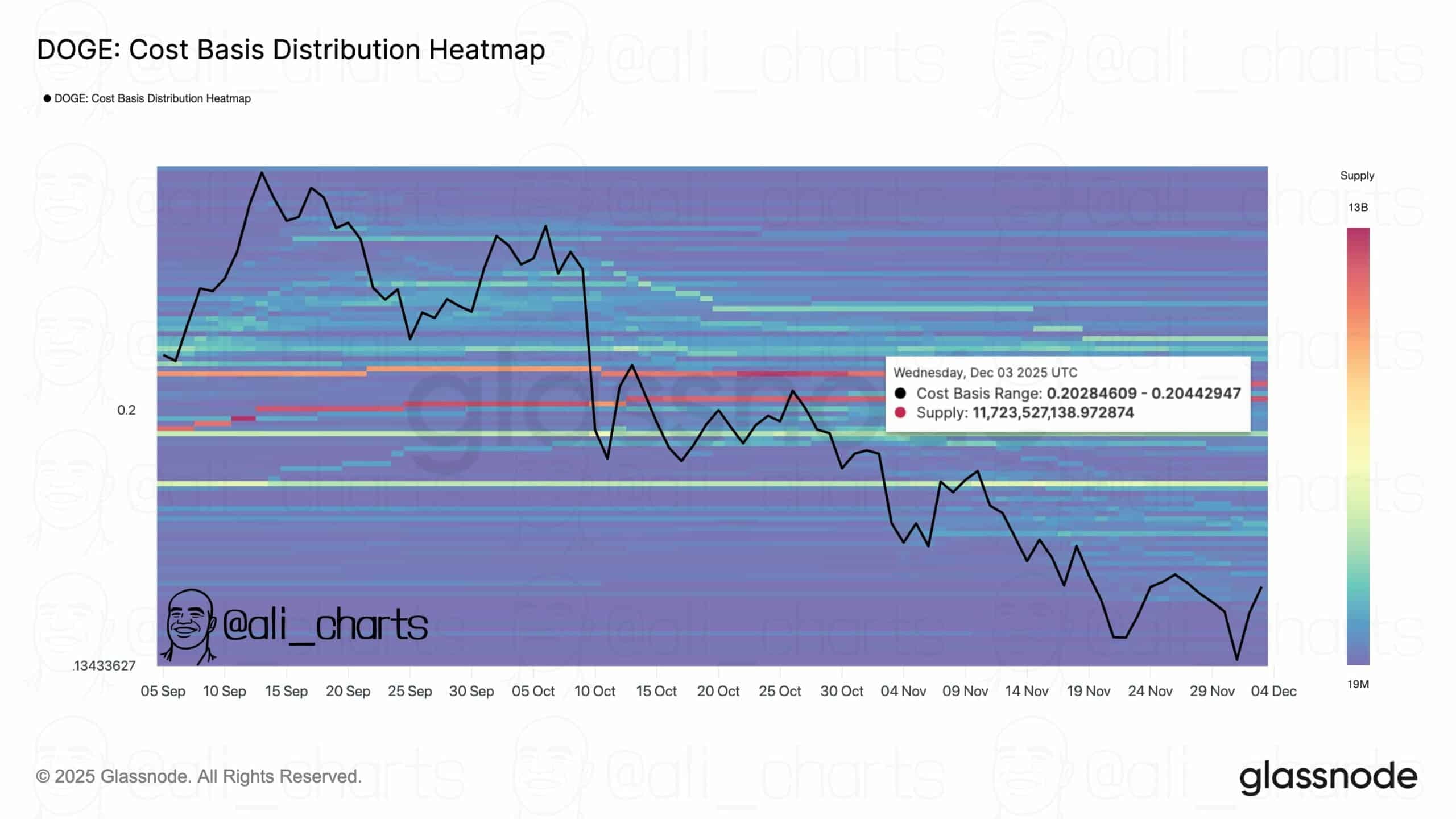 狗狗幣現在最大的風險,並不是需求不足,而是上方堆積的老持倉“等着出貨”。