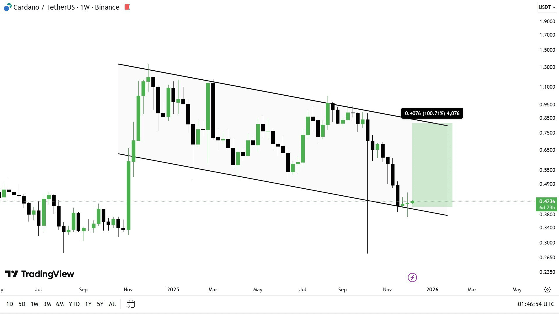 $ADA 在宏觀圖表中正在形成看漲旗形模式 🦬。