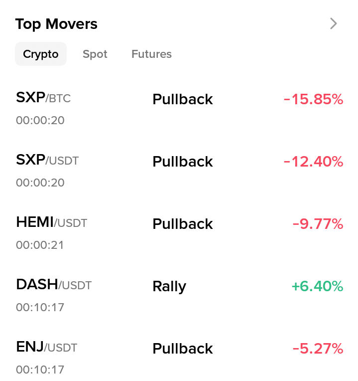 今天的市場顯示出SXP、HEMI和ENJ的強勁回調——而DASH以新的反彈(+6.40%)脫穎而出。