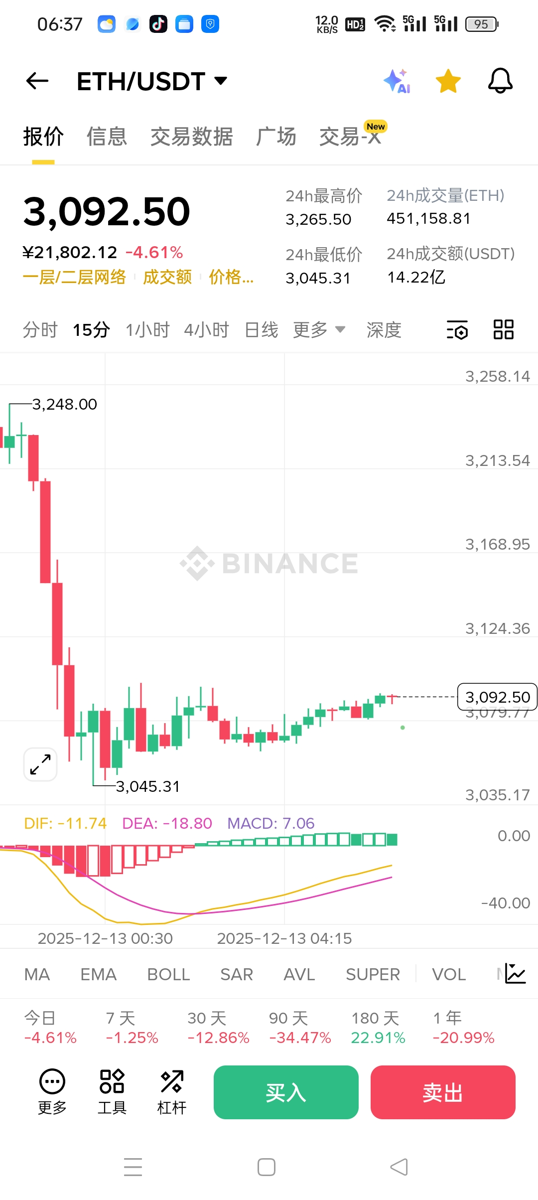 ETH這波震盪把市場懸念拉滿了!當前價格圍繞3092.5 USDT窄幅拉鋸,24h跌4.61%後陷入“織布”行情,多空雙方在關鍵區間展開激烈博弈,短期方向即將明朗,這幾個核心信號必須盯緊: